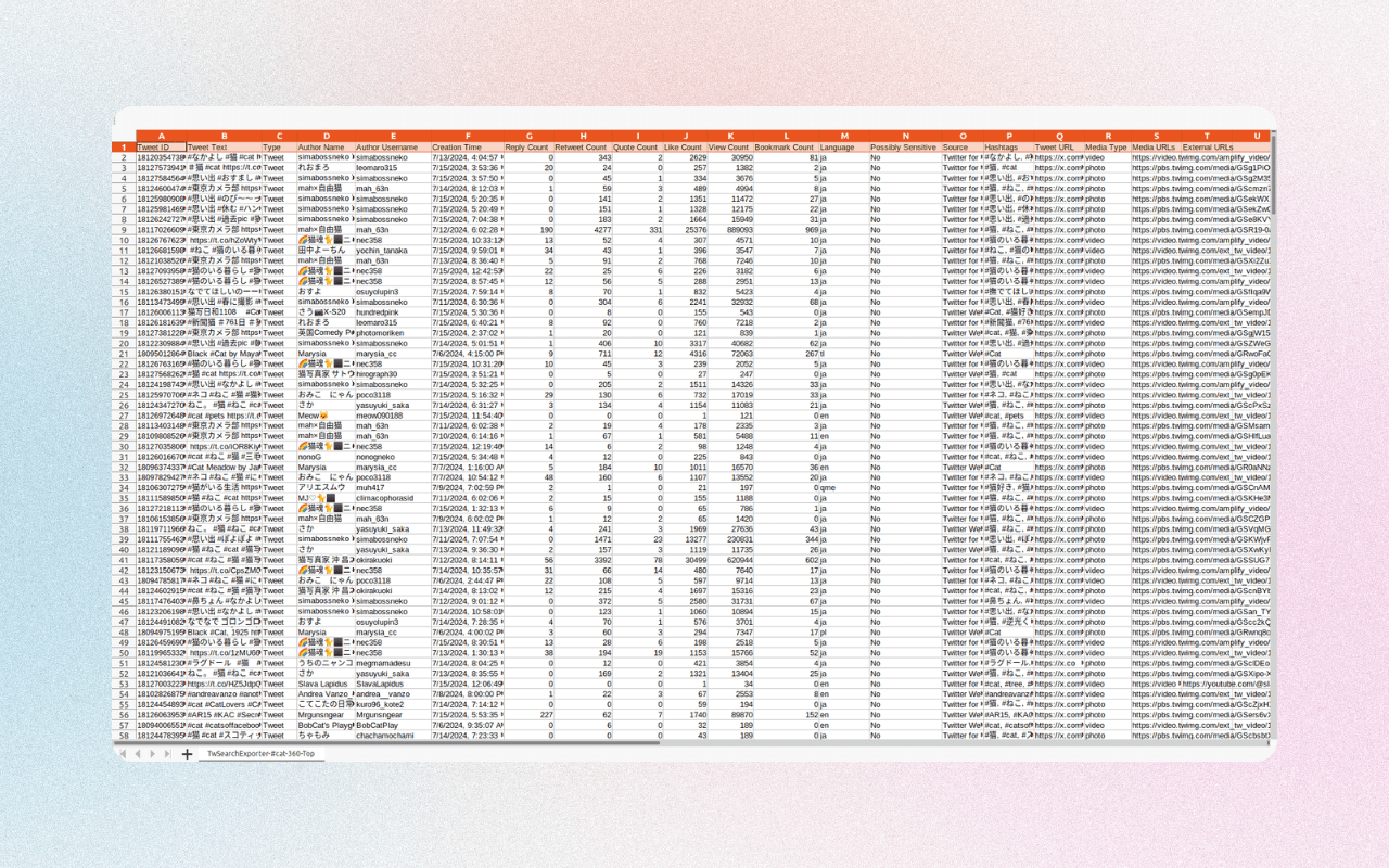 What type of data can you export via our Twitter Search Exporter